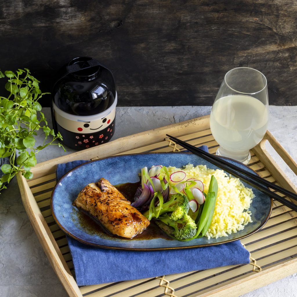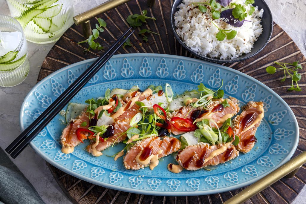Lax tataki med sesamris och päron